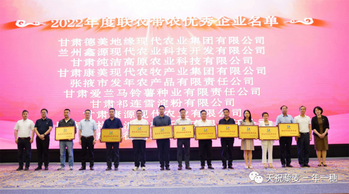 會議還進行了表彰,甘肅純潔高原農業(yè)科技有限公司被授予“聯(lián)農帶農優(yōu)秀企業(yè)”,被認定為中國銀行“甘味貸”金融產品首批重點支持企業(yè)。