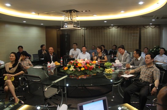 (劉羽桐董事長在多媒體會議室為代表團介紹公司情況)