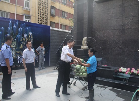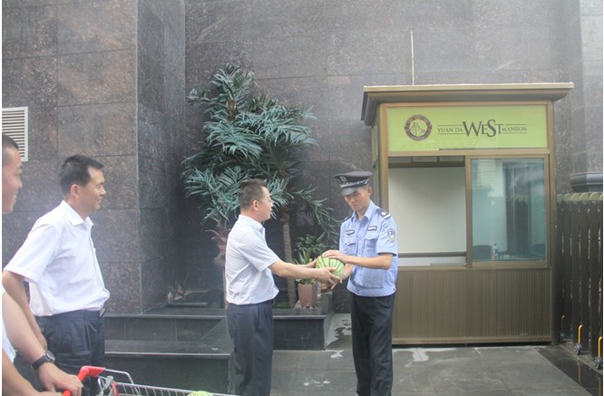 炎炎夏日,酷暑難耐,集團(tuán)公司的各項工作卻絲毫沒受影響,這得益于公司員工的堅守崗位與認(rèn)真負(fù)責(zé),為此集團(tuán)公司決定由工會組織開展“為一線員工送清涼”活動,以表示鼓勵和慰問。7月26日,由集團(tuán)工會、人力資源部、物業(yè)公司、總裁辦組成的“送清涼”活動小組,為工作在一線的基層員工送去了集團(tuán)綠化基地自產(chǎn)的甘甜解渴的西瓜。