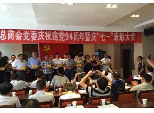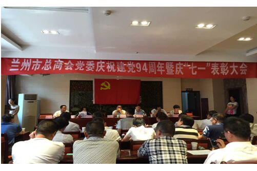 圖為蘭州市總商會黨委組織召開慶祝建黨94周年暨慶“七一”表彰大會現(xiàn)場