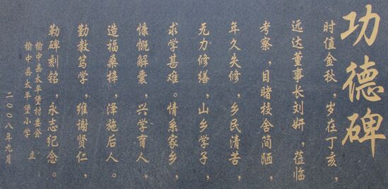2008年公司捐資的榆中縣太平堡小學(xué)所立的功德碑