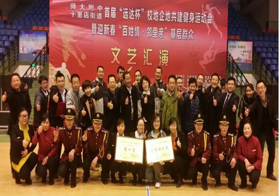 2015年12月27日,由西北師范大學(xué)附中和十里店街道籌備組織,由遠(yuǎn)達(dá)集團(tuán)獨(dú)立贊助的“首屆‘遠(yuǎn)達(dá)杯’校地、企地運(yùn)動(dòng)會(huì)”在位于安寧區(qū)的西北師范大學(xué)附中體育館舉辦。來自安寧區(qū)十里店街道轄區(qū)的10余個(gè)單位和甘肅遠(yuǎn)達(dá)集團(tuán)近500余人參加了當(dāng)天的開(閉)幕式和各項(xiàng)比賽。遠(yuǎn)達(dá)集團(tuán)劉羽桐董事長,副總裁宋佩新、副總裁張磊、財(cái)務(wù)總監(jiān)楊朝暉、房地產(chǎn)總經(jīng)理燕曉剛等領(lǐng)導(dǎo)蒞臨運(yùn)動(dòng)會(huì)現(xiàn)場并參加比賽、為運(yùn)動(dòng)員加油鼓勁,黨支部書記王生春代表集團(tuán)公司在開幕式上致辭,劉董事長,宋總、張總、楊總監(jiān)在閉幕式為獲獎(jiǎng)單位、運(yùn)動(dòng)員頒獎(jiǎng)。經(jīng)過激烈的比賽(籃球、拔河、羽毛球等項(xiàng)目在27日前已決出名次),遠(yuǎn)達(dá)集團(tuán)分別獲得“籃球男子組冠軍”、集體“優(yōu)秀組織獎(jiǎng)”、個(gè)人“優(yōu)秀組織獎(jiǎng)”、齊心協(xié)力賽“三等獎(jiǎng)”的成績。