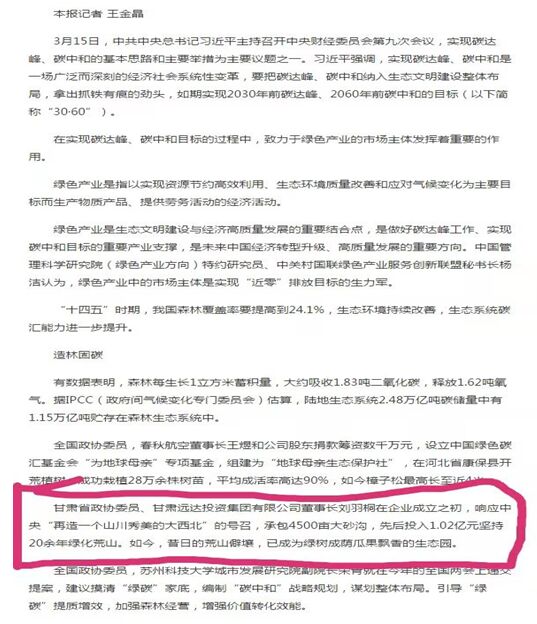 人民政協(xié)報6版民營聚焦頭條刊發(fā)劉羽桐事跡(綠色產(chǎn)業(yè)邁向“30·60”