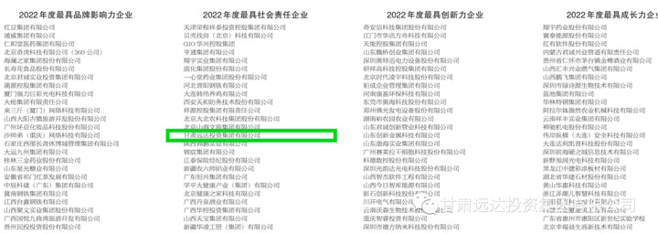甘肅遠(yuǎn)達(dá)投資集團(tuán)有限公司榮登榜單,是2022年度中國(guó)最具社會(huì)責(zé)任的25家民營(yíng)企業(yè)之一。