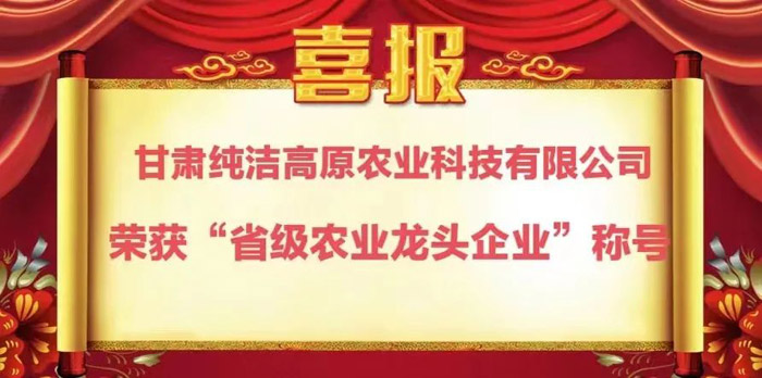 熱烈祝賀甘肅純潔高原農(nóng)業(yè)科技有限公司被評為省級農(nóng)業(yè)產(chǎn)業(yè)化重點龍頭企業(yè)
