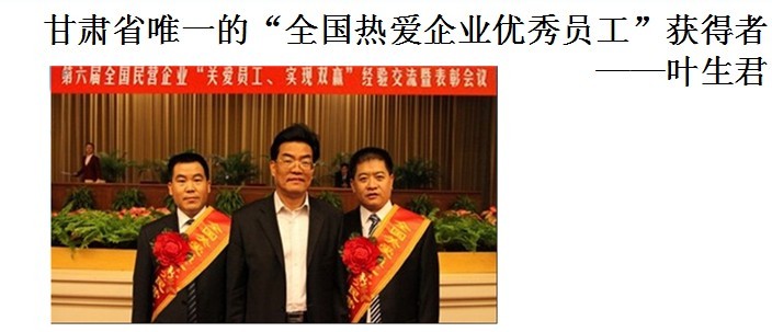 從2005年遠(yuǎn)達(dá)文化大廈施工到2007年竣工為止,葉生君天天騎摩托車近百公里往返于工地和安寧的家。2008年為了解決大廈遺留工程問題,他直接把家里的被子、褥子一股腦地搬到了集團(tuán)大廈。葉生君的勤奮樸實(shí),獲得了公司及社會(huì)的廣泛認(rèn)可。從1997年任職開始起,他連年獲得遠(yuǎn)達(dá)投資集團(tuán)有限公司頒發(fā)的“生產(chǎn)技術(shù)標(biāo)兵”榮譽(yù)稱號(hào)。2010年他又獲得蘭州市“愛企業(yè)的優(yōu)秀員工”榮譽(yù)稱號(hào)。